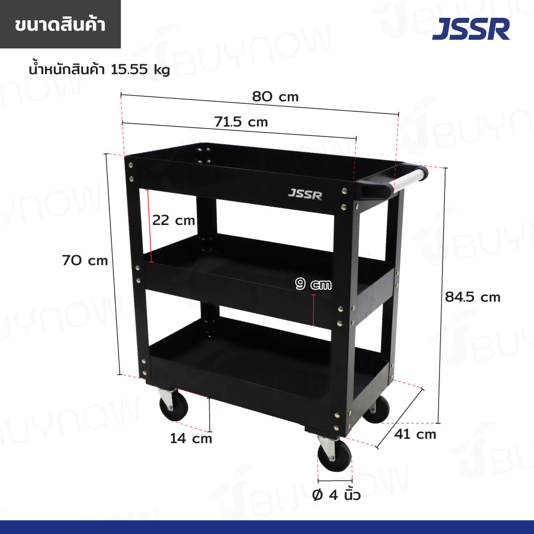 รถเข็นเครื่องมือ 3 ชั้น Heavy duty 41x80x84.5 cm สีดำ JBUYNOW TT-003-B