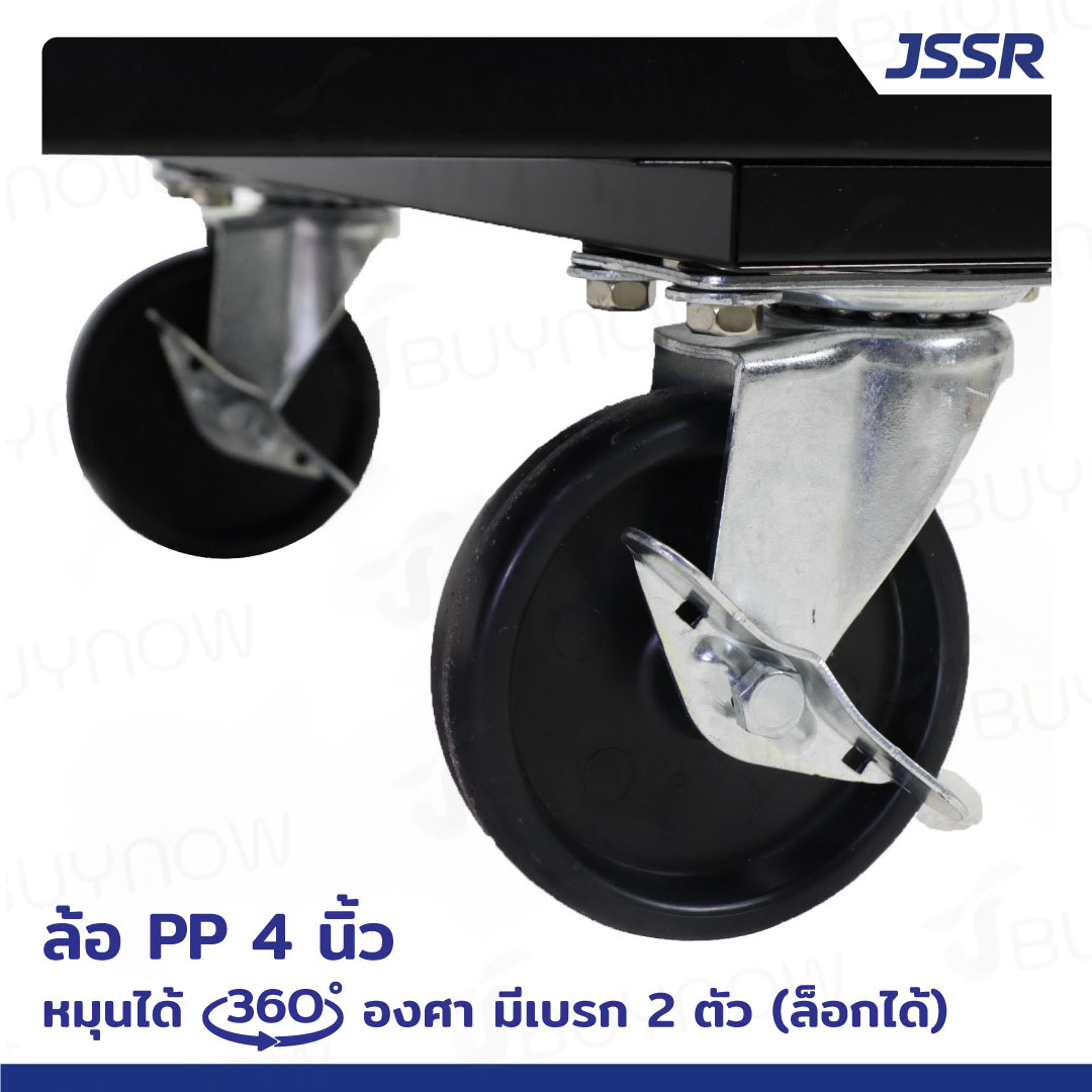 - ล้อ PP ขนาด 4 นิ้ว ล้อหมุนได้ 360 องศาได้ทั้ง 4 ล้อ มีเบรกข้าง 2 ล้อ (ล็อกได้)