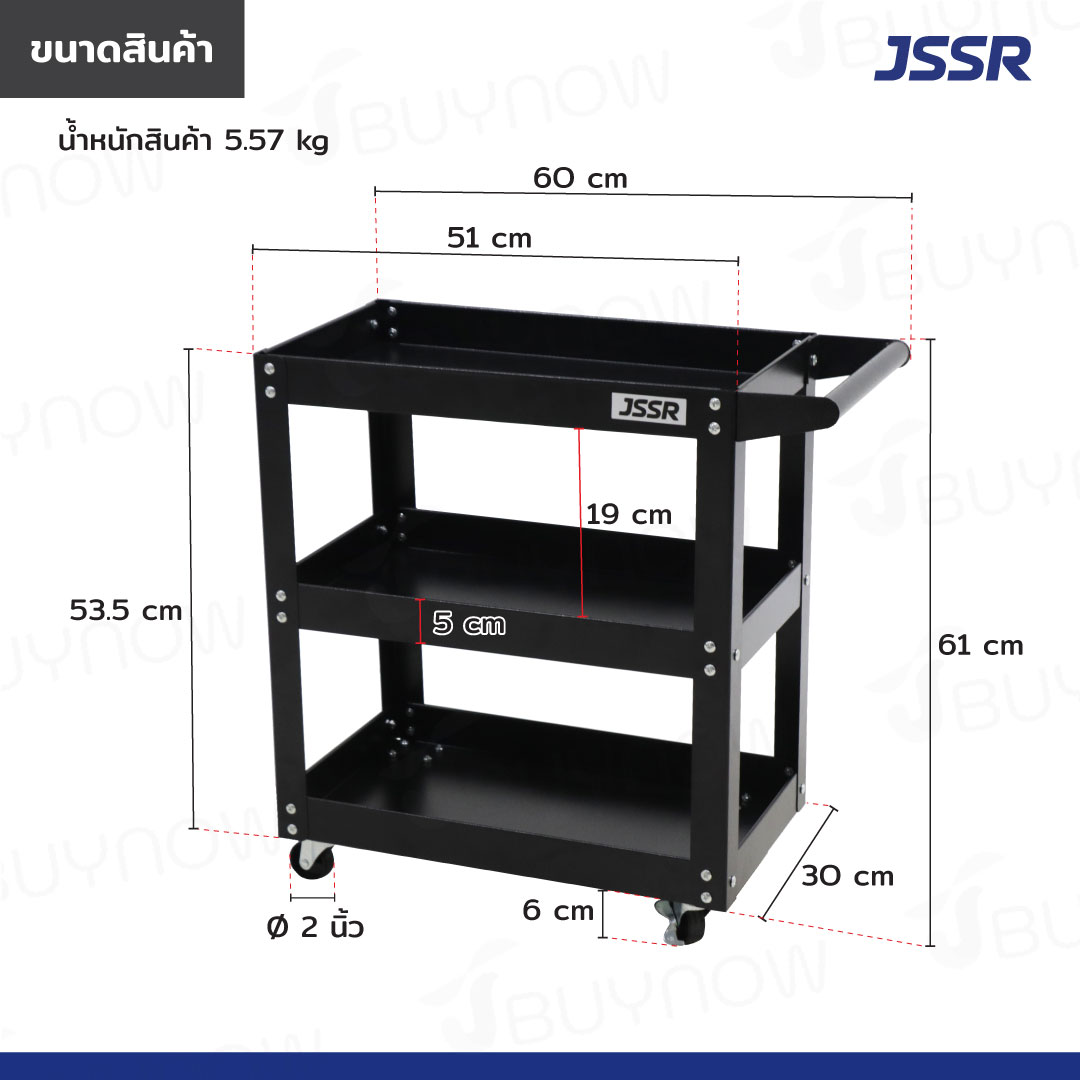 รถเข็นเครื่องมือช่าง ชั้นวางเครื่องมือ 3 ชั้น 30x60x61 ซม.สีดำ ZR-TT103BK
