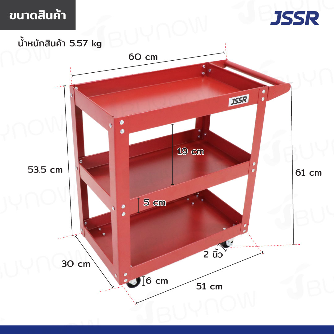 รถเข็นเครื่องมือช่าง ชั้นวางเครื่องมือ 3 ชั้น 30x60x61 cm สีแดง ZR-TT103RD