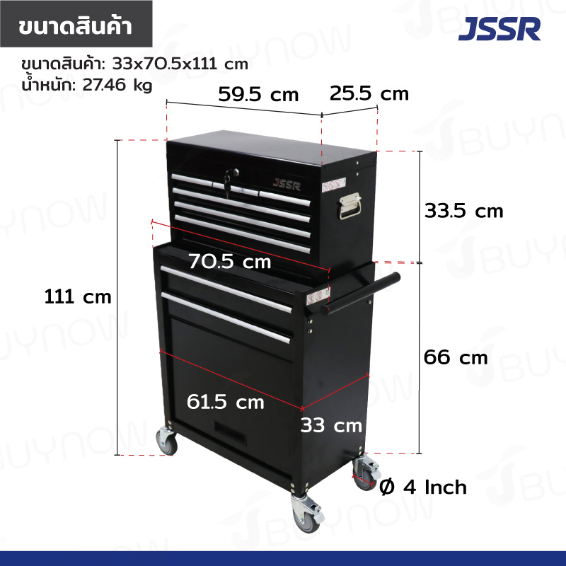 - ขนาดตู้เครื่องมือชั้นล่าง(รวมล้อ/ด้ามจับ): 33x70x78.5 cm