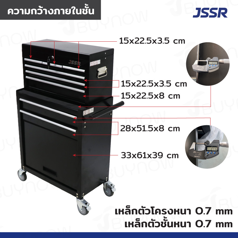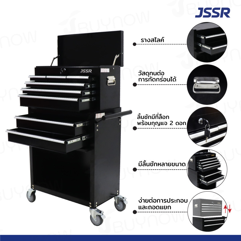 - ชุดกล่องและตู้เครื่องมือ แยกออกจากกันได้ (ตู้ด้านบนสามารถยก สะดวกสำหรับใช้พกพานอกสถานที่)