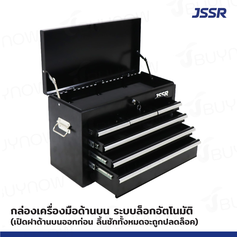 - กล่องเครื่องมือด้านบน ระบบล็อกอัตโนมัติ(เปิดฝาด้านบนออกก่อน ลิ้นชักทั้งหมดจะถูกปลดล็อค)