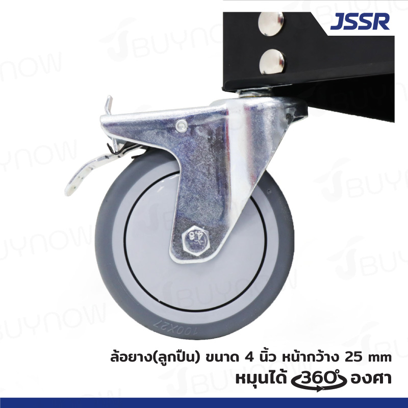 - ล้อยาง(ลูกปืน) ขนาด 4 นิ้ว(25x100mm.)หมุนได้ 360 องศา และเป็นล้อเบรคบน 2 ล้อ (เสียงเงียบ)