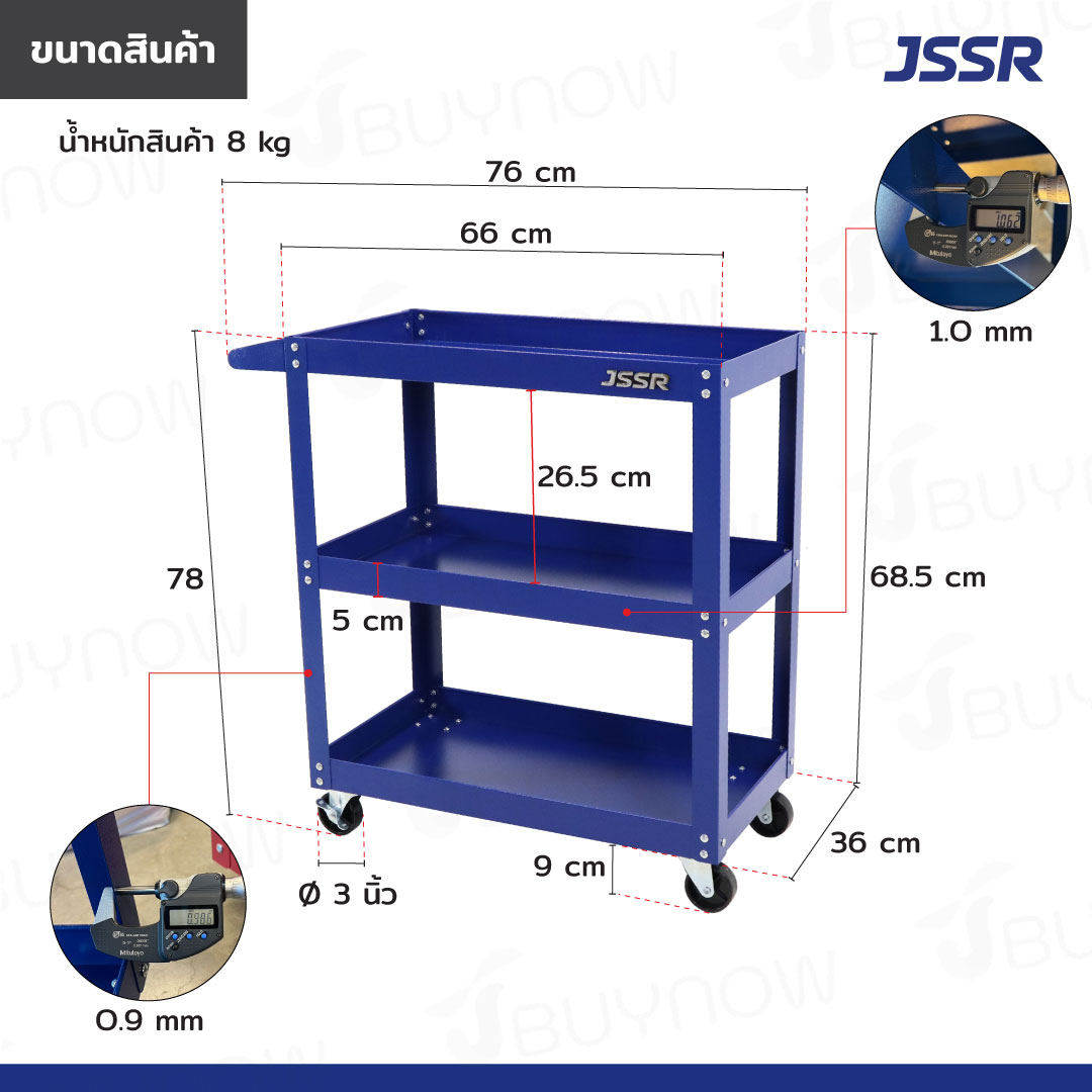 รถเข็นเครื่องมือช่าง ชั้นวางเครื่องมือ 3 ชั้น 36x76x78 CM สีน้ำเงิน