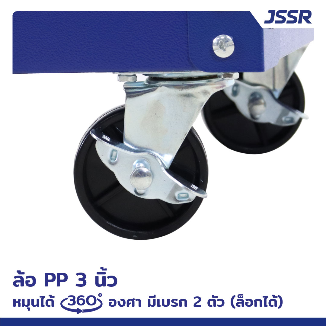 - ล้อ PP 3 นิ้ว ล้อสามารถหมุนได้ 360 องศาได้ทั้ง 4 ตัวมีเบรก 2 ตัว (ล็อกได้)