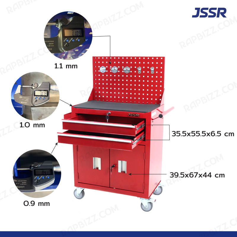 รถเข็นเครื่องมือช่าง รุ่นมีแผงแขวนเครื่องมือ 41x85x123 ซม. สีแดง JBUYNOW