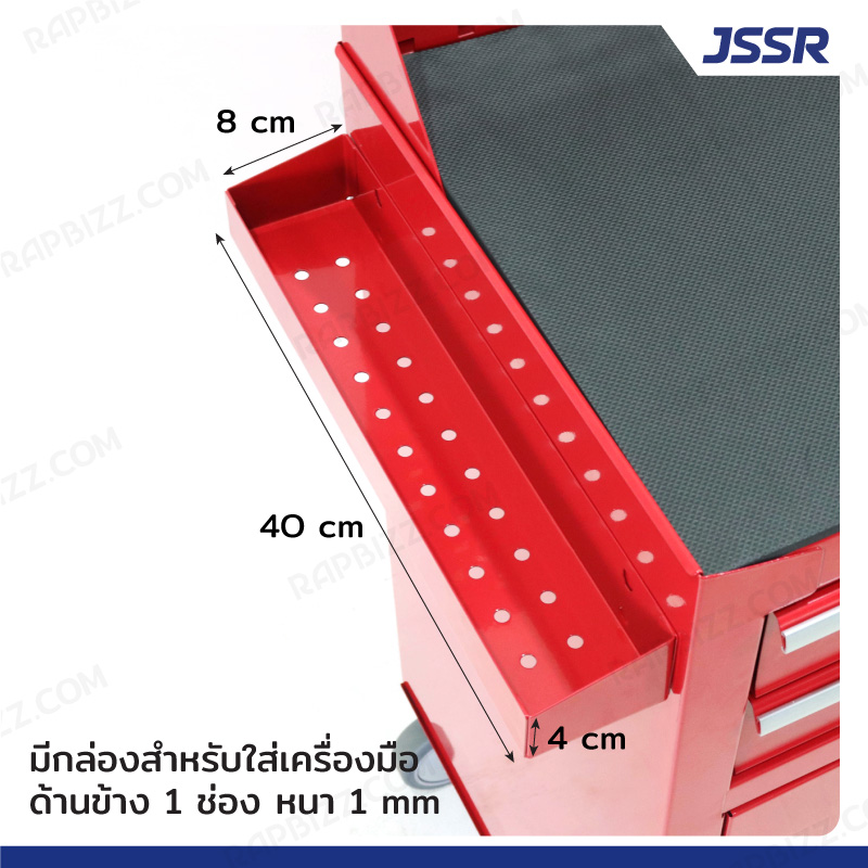 - มีกล่องสำหรับใส่เครื่องมือด้านข้าง 1 ช่อง ขนาด 8x40x4 cm หนา 1 mm