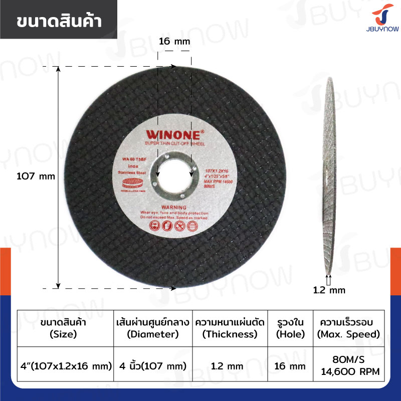 - ขนาดใบตัด: 107x1.2x16mm
