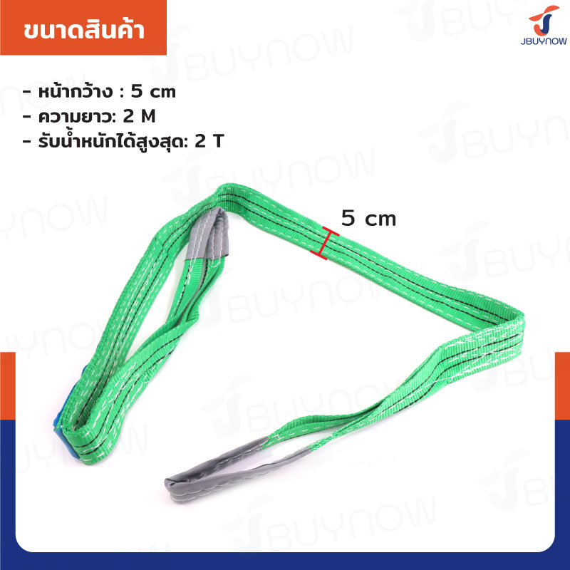 สลิงผ้าใบแบน สายพานยกของ (เซฟตี้ 4:1 มีใบเซอร์) 2 ตัน ยาว 5 เมตร JBUYNOW 2TX5M