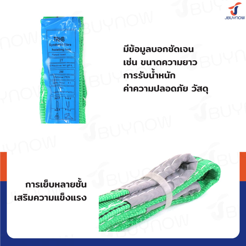 สลิงผ้าใบแบน สายพานยกของ (เซฟตี้ 4:1 มีใบเซอร์) 2 ตัน ยาว 2 เมตร JBUYNOW 2Tx2M
