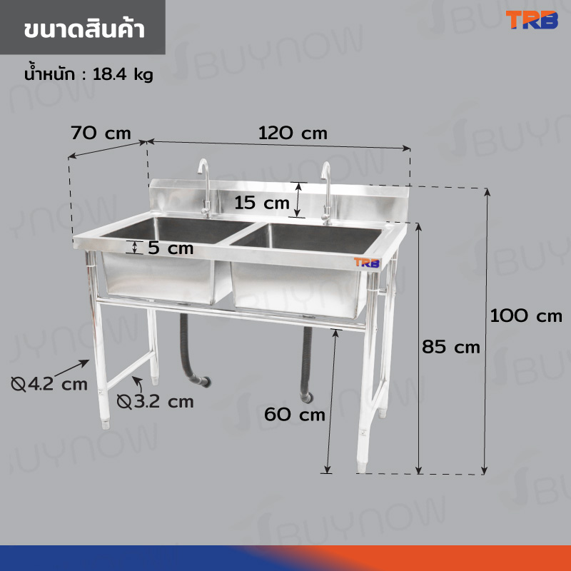 - ขนาดซิงค์ล้างจานไม่รวมที่กั้น(กว้างxยาวxสูง): 70x120x85 cm