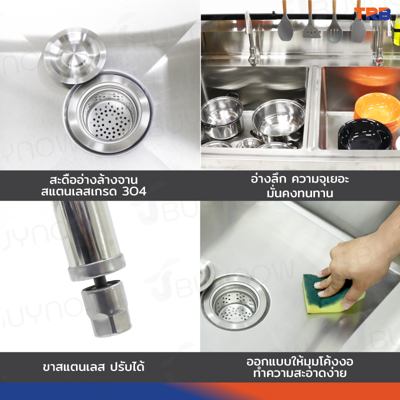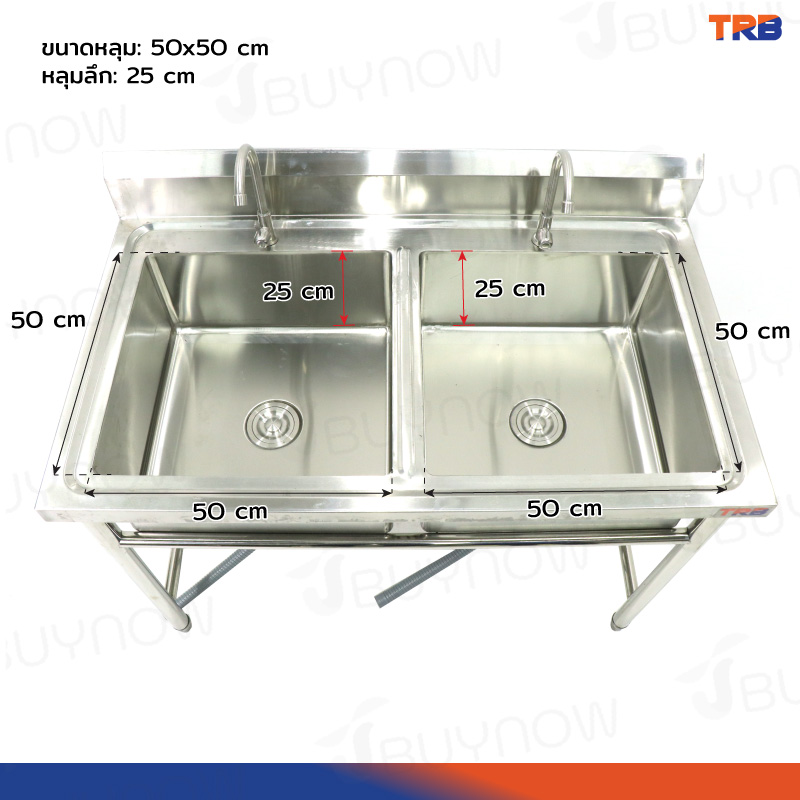 ซิงค์ล้างจาน 2 หลุม สแตนเลสเกรด 201 70x120x100cm JBUYNOW TRB RB230531-7