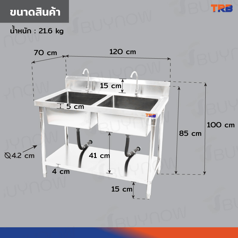 - ขนาดซิงค์ล้างจานไม่รวมที่กั้น(กว้างxยาวxสูง): 70x120x85 cm