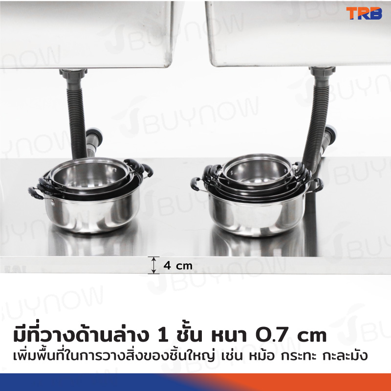 ซิงค์ล้างจาน 2 หลุม มีชั้นวางใต้ซิงค์ 1 ชั้น สแตนเลสเกรด 201 70x120x100cm JBUYNOW TRB RB230531-7-1L