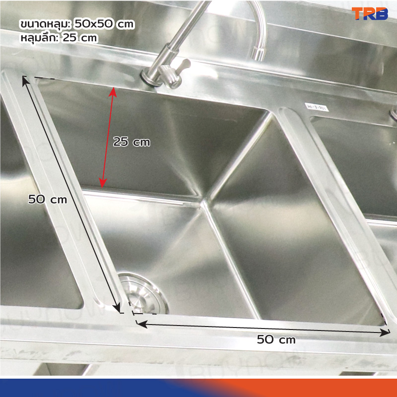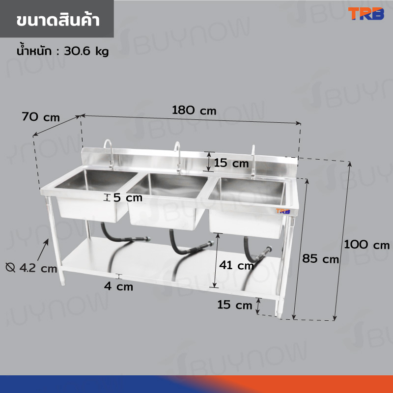 ซิงค์ล้างจาน 3 หลุม มีชั้นวางใต้ซิงค์ 1 ชั้น สแตนเลสเกรด 201 70x180x100cm JBUYNOW TRB RB230531-8-1L