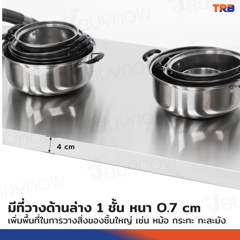 - ด้านล่างมีที่วาง 1 ชั้น เพิ่มพื้นที่ในการวางสิ่งของชิ้นใหญ่ เช่น หม้อ กระทะ กะละมัง เป็นต้น