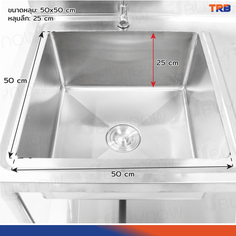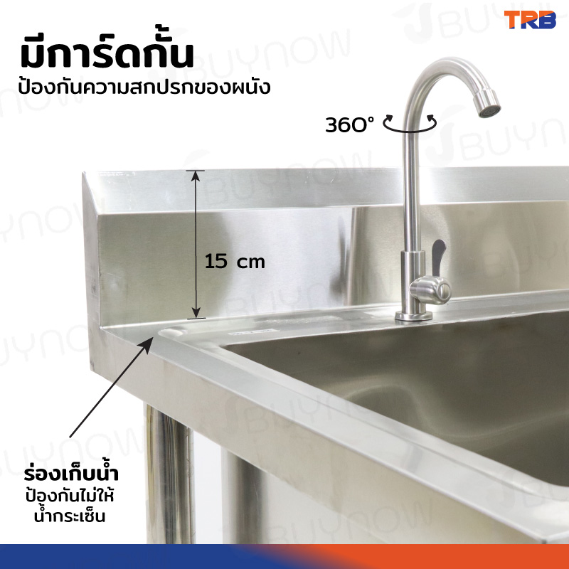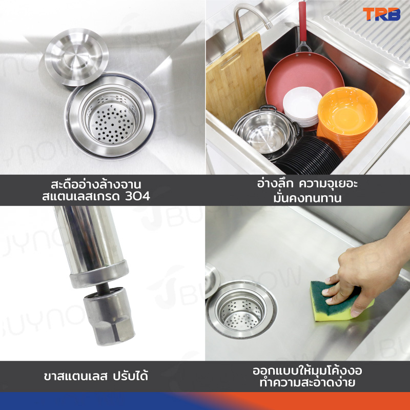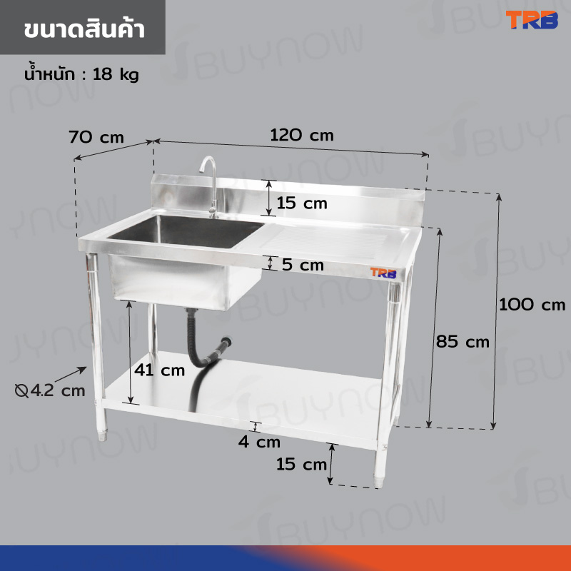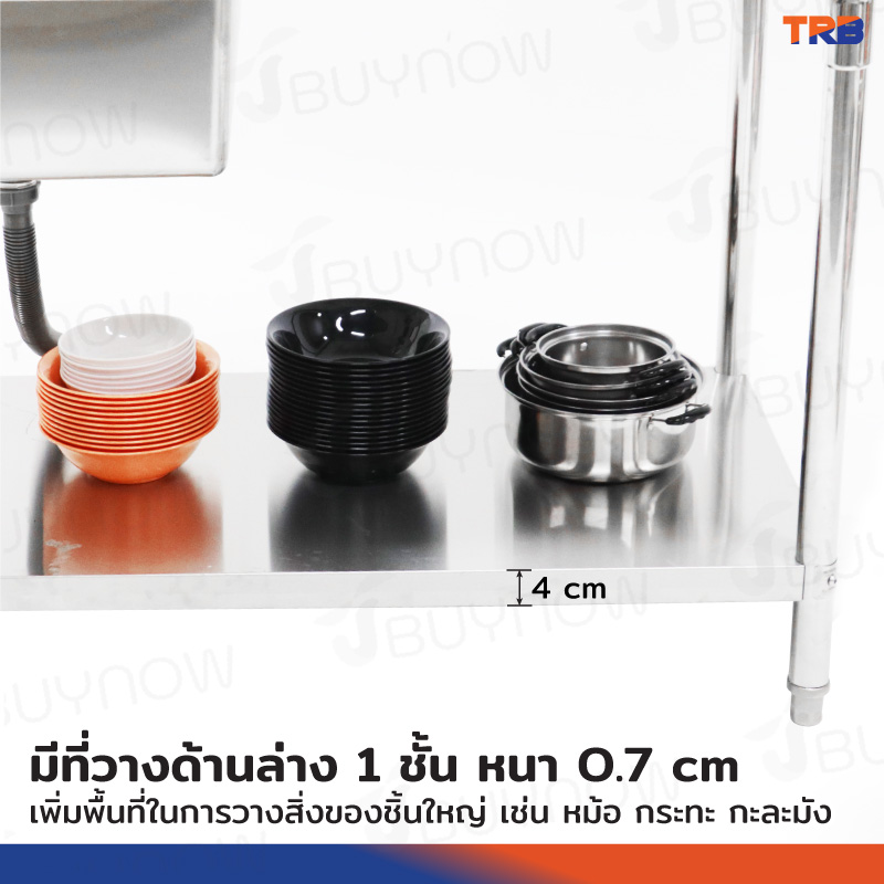 ซิงค์ล้างจาน 1 หลุมด้านซ้าย 1ที่พักจาน มีชั้นวางใต้ซิงค์ 1 ชั้น สแตนเลสเกรด 201 70x120x100cm JBUYNOW TRB RB230531-9-1L