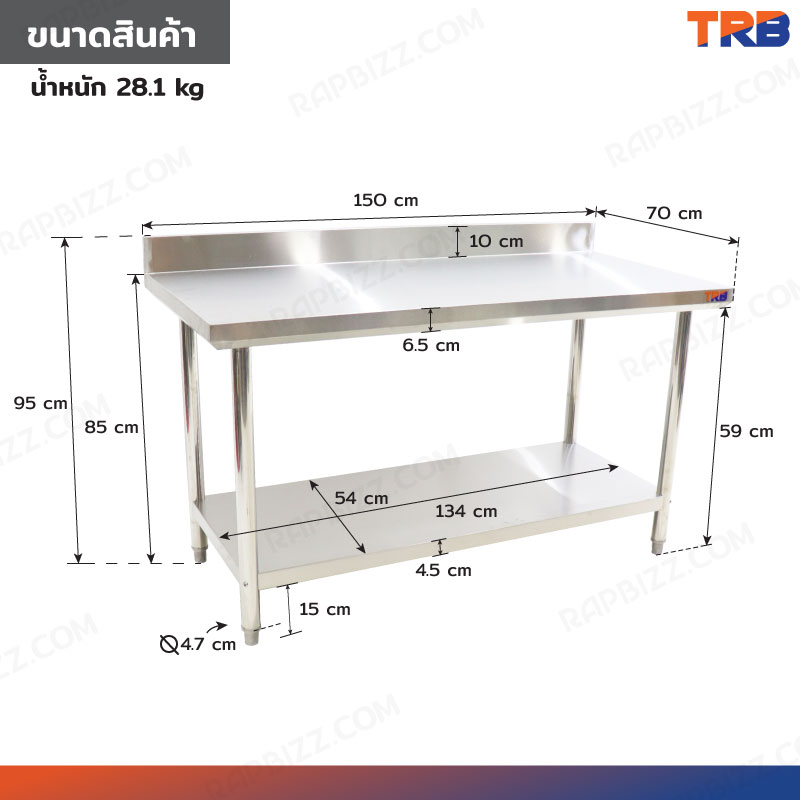 Stainless Steel Table โต๊ะครัวสแตนเลส มีการ์ดกั้น 70x150x95cm RB230417-8(W70)